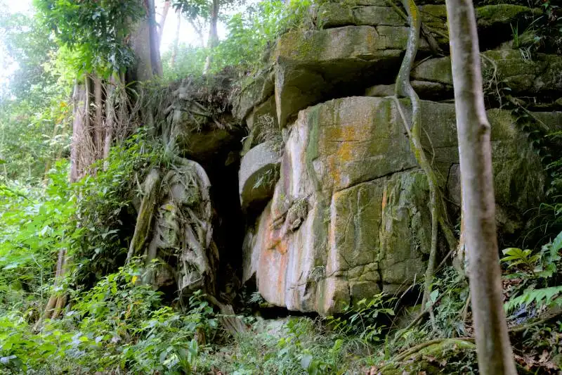 The Angkor Wat Tree has multiple roots that tangle over the rocks, resembling the trees at Angkor Wat. Next to it is a rock that used to be a temple. Both sites can be accessed via the Nuri Trail. There is also a tiny cave nearby. Please check your hiking route to locate this trail.
