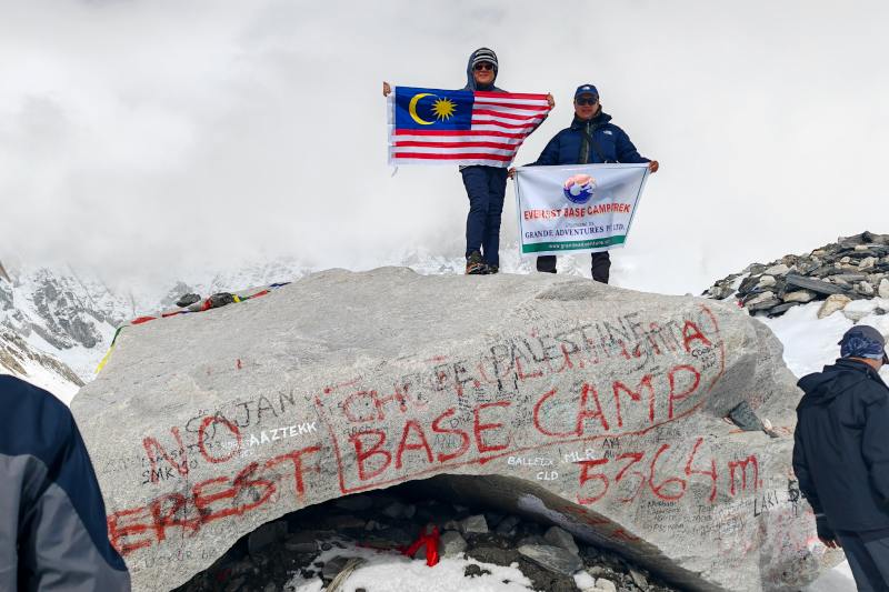 Meanwhile, Bernard proudly unfurled the Jalur Gemilang, standing on top of the EBC Rock.